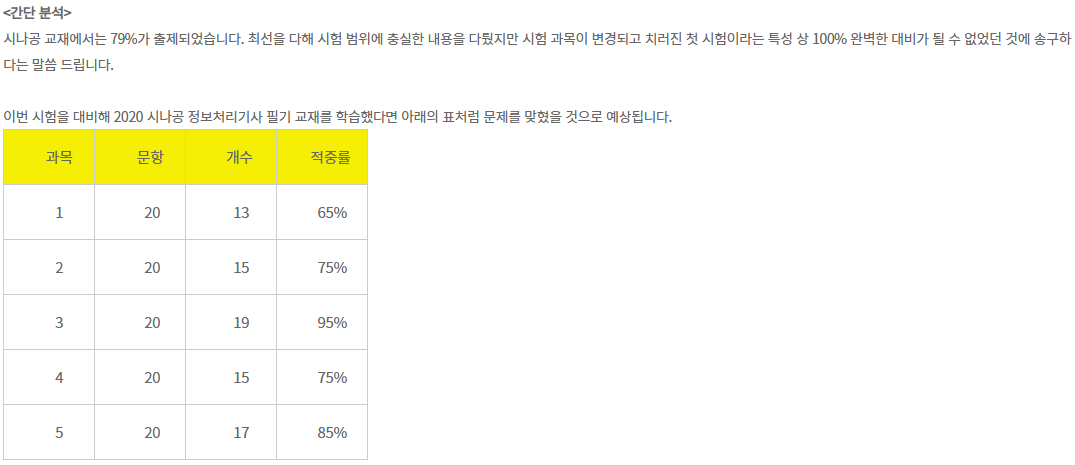 시나공 교재에서 79퍼센트의 내용이 출제되었다. 교재를 꼼꼼하게 본 사람들은 합격했겠지만 바쁘고 시간이 부족했던 사람은 합격하지 못했을 것이다.