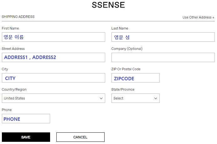 8. 다시 센스로 돌아와 빈칸을 *오마이집* 출발 센터 선택 밑에 있는 ADDRESS, CITY, STATE, ZIPCODE, PHONE를 전부 그대로 복사한다.