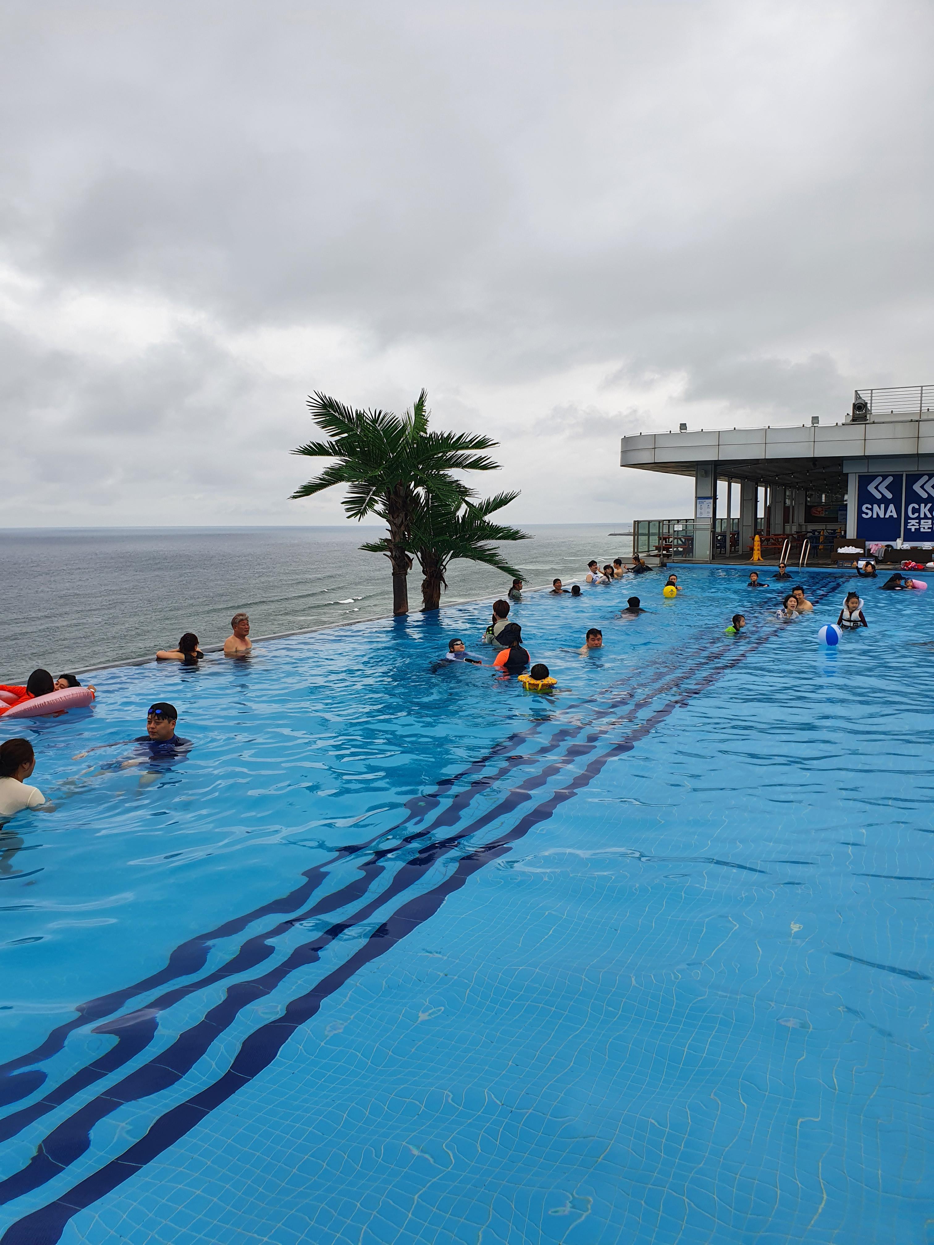 여자친구와 서로 인생샷을 찍어주려고 인피니티풀이 있는 호텔로 예약했는데, 날씨가 좋지 않아 아쉬웠다.
