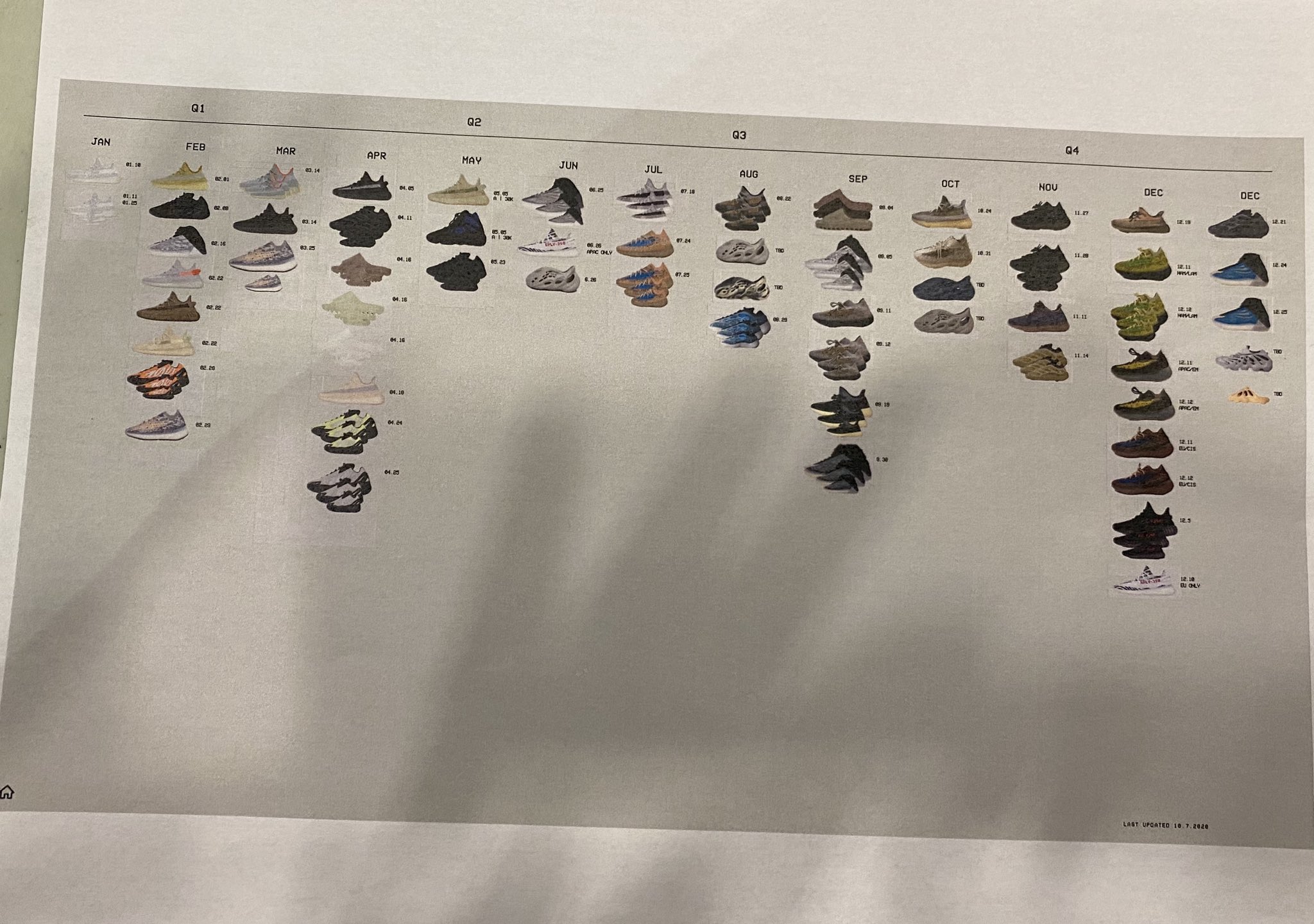 칸예의 실수인지 의도적으로 올린 건지 모르겠지만, 이지부스트 발매 예정 캘린더가 공개되었다.