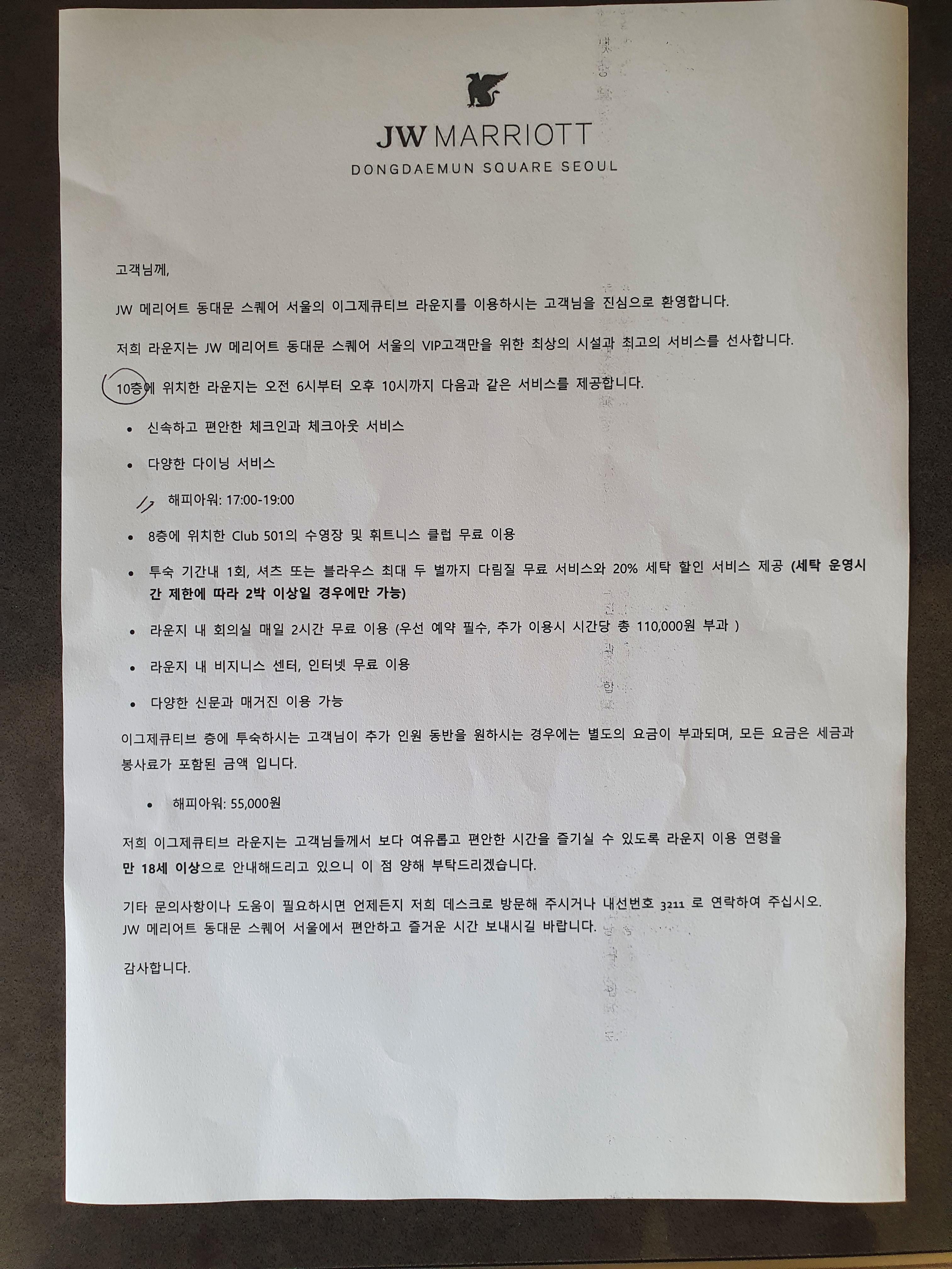 동대문역에 있는 JW 메리어트를 다녀왔다.
