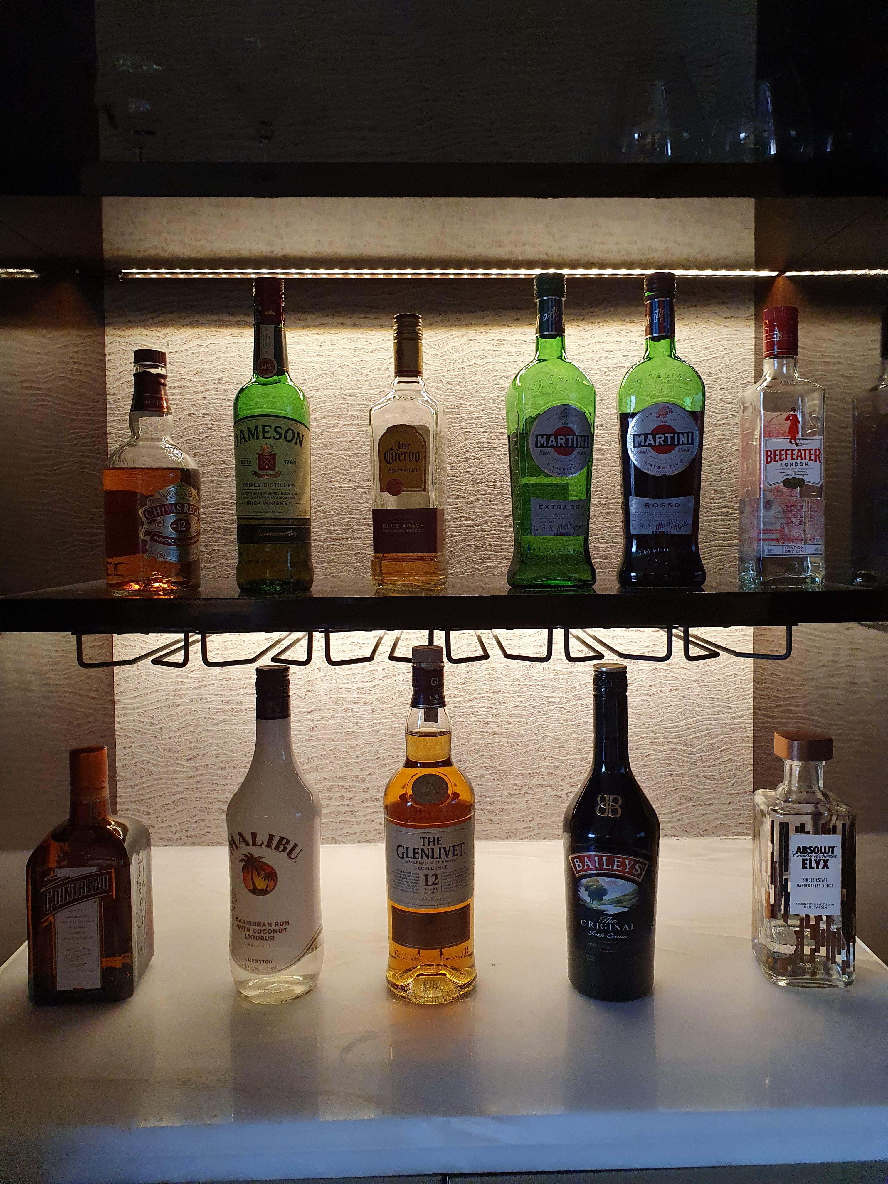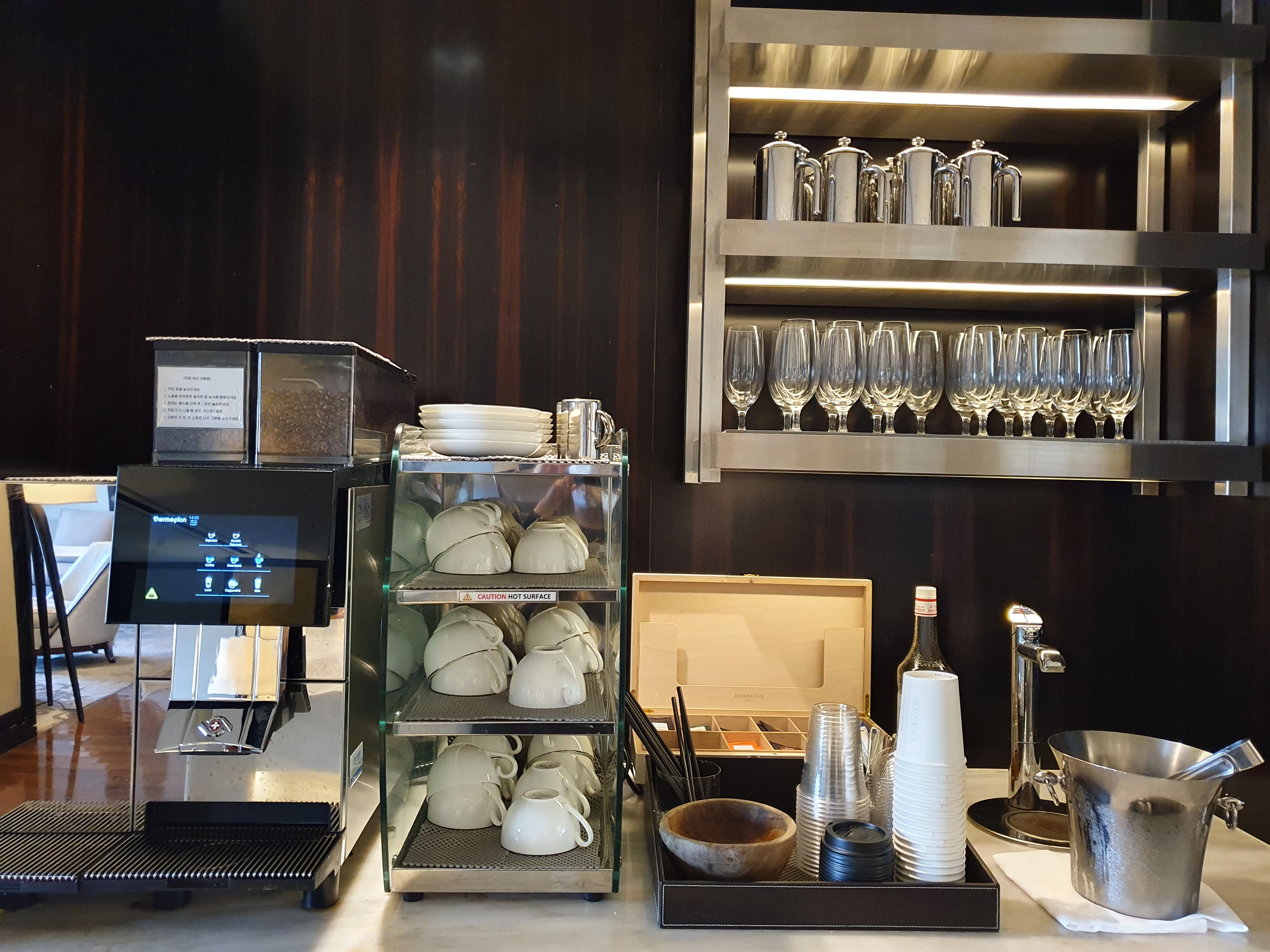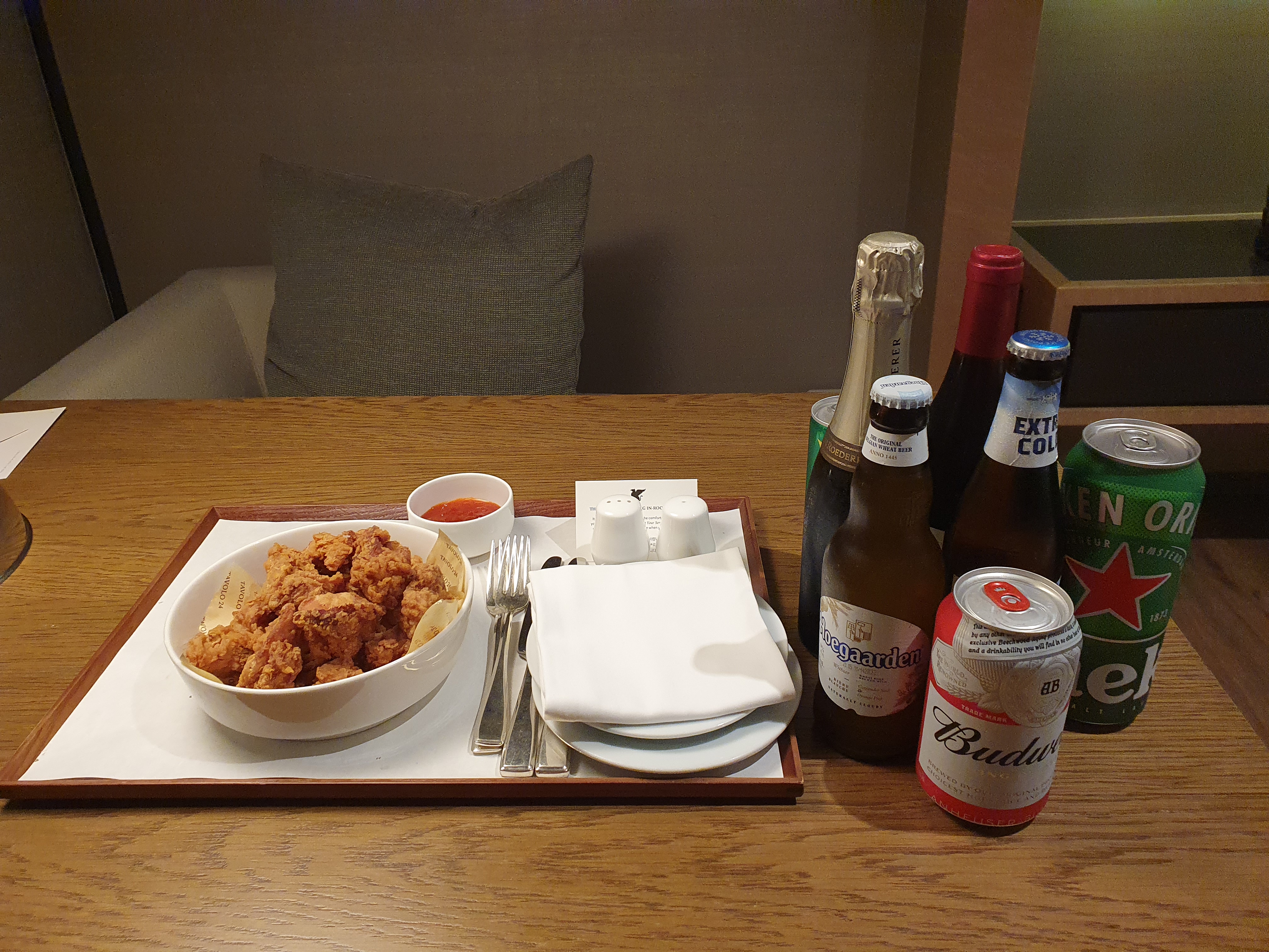 음식과 술이 준비되어 있고, 이그제큐티브룸을 이용하는 고객은 전부 무료다.