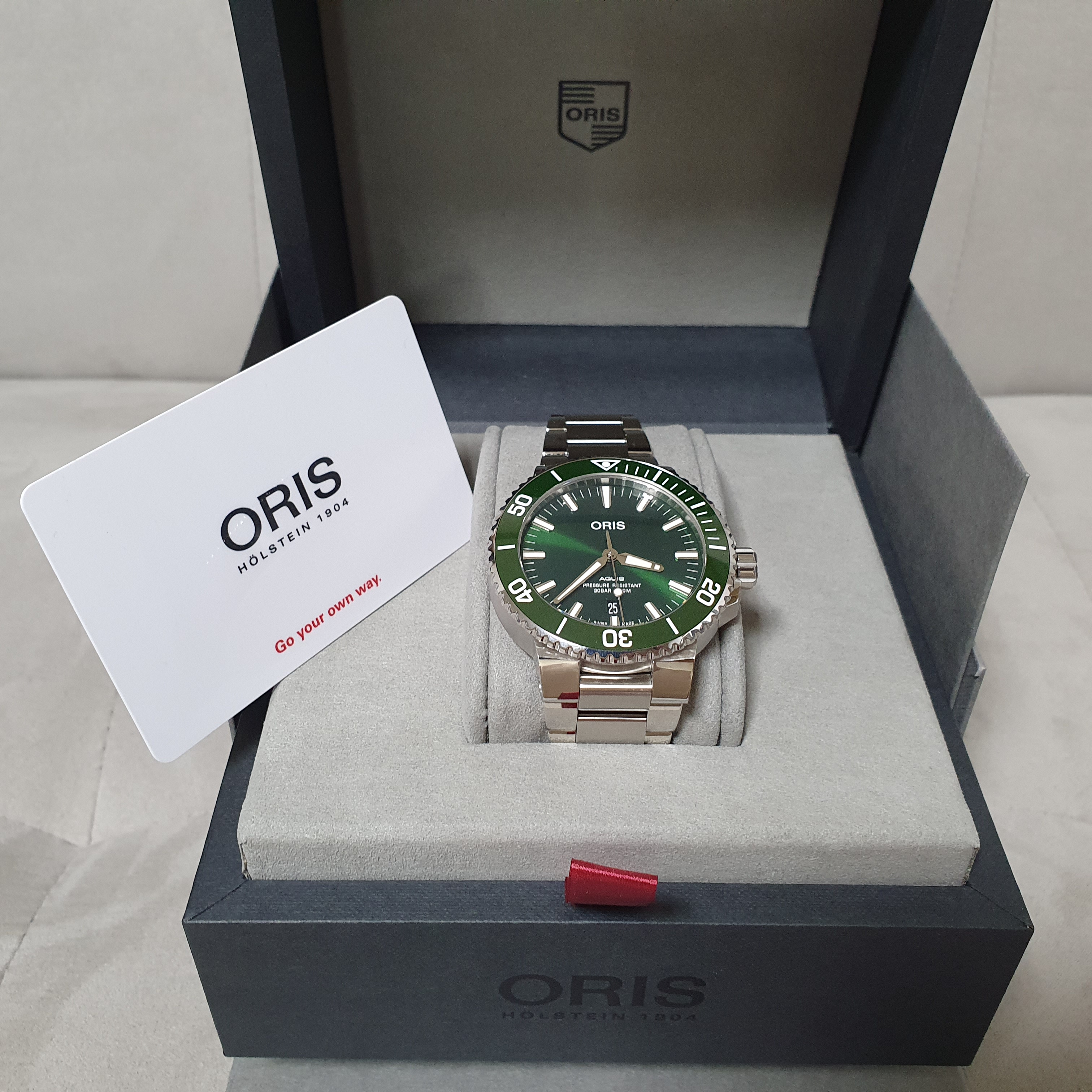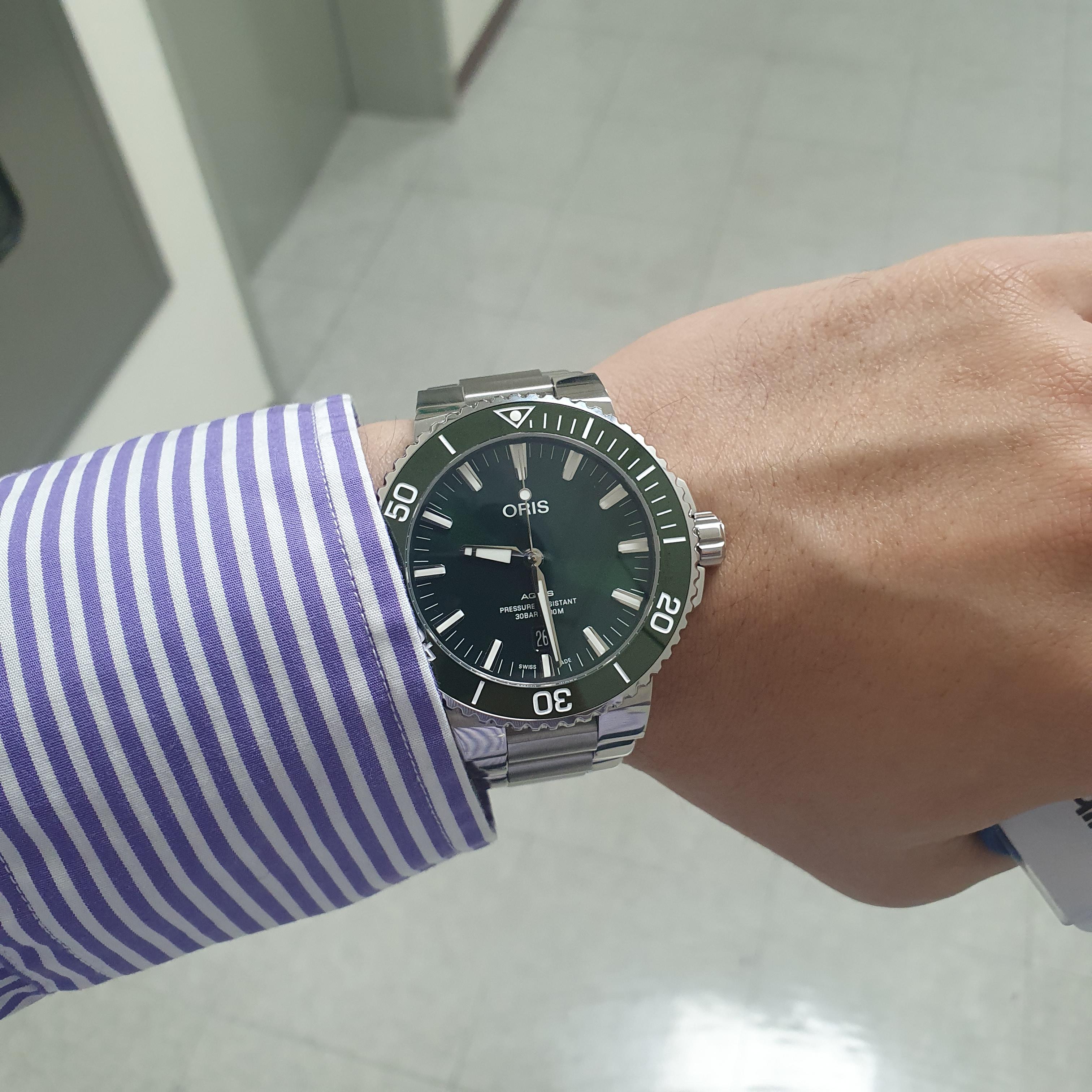 구매하기 전에 백화점 오리스 매장 가서 딥블루와 그린을 번갈아 차 보면서 정말 많이 고민을 했다.