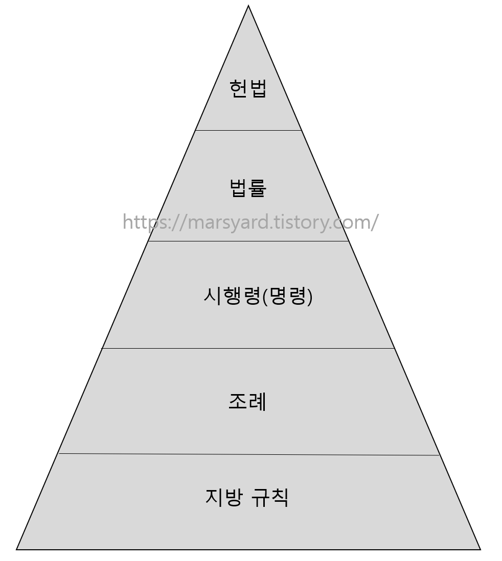 - 시행령(명령, 시행규칙) : 국회의 의결을 거치지 않고, 각 부에 의해서 제정